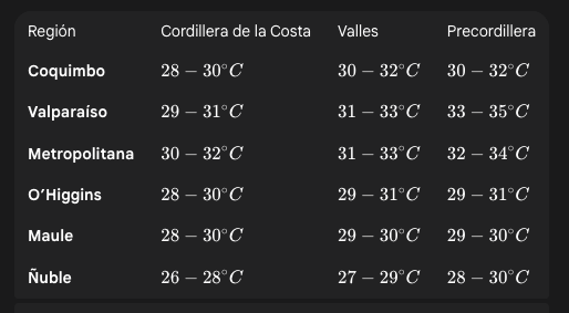 El peak de calor se registrará principalmente en la Precordillera de Valparaíso, donde se proyectan los valores más altos, alcanzando hasta 35°C.