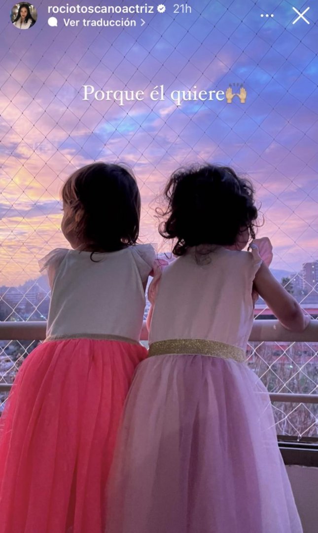 La actriz Rocío Toscano subió una imagen de sus hijos gemelos, Alma y Luca, sentados comiendo cereales, luciendo cada uno un vestido puesto.