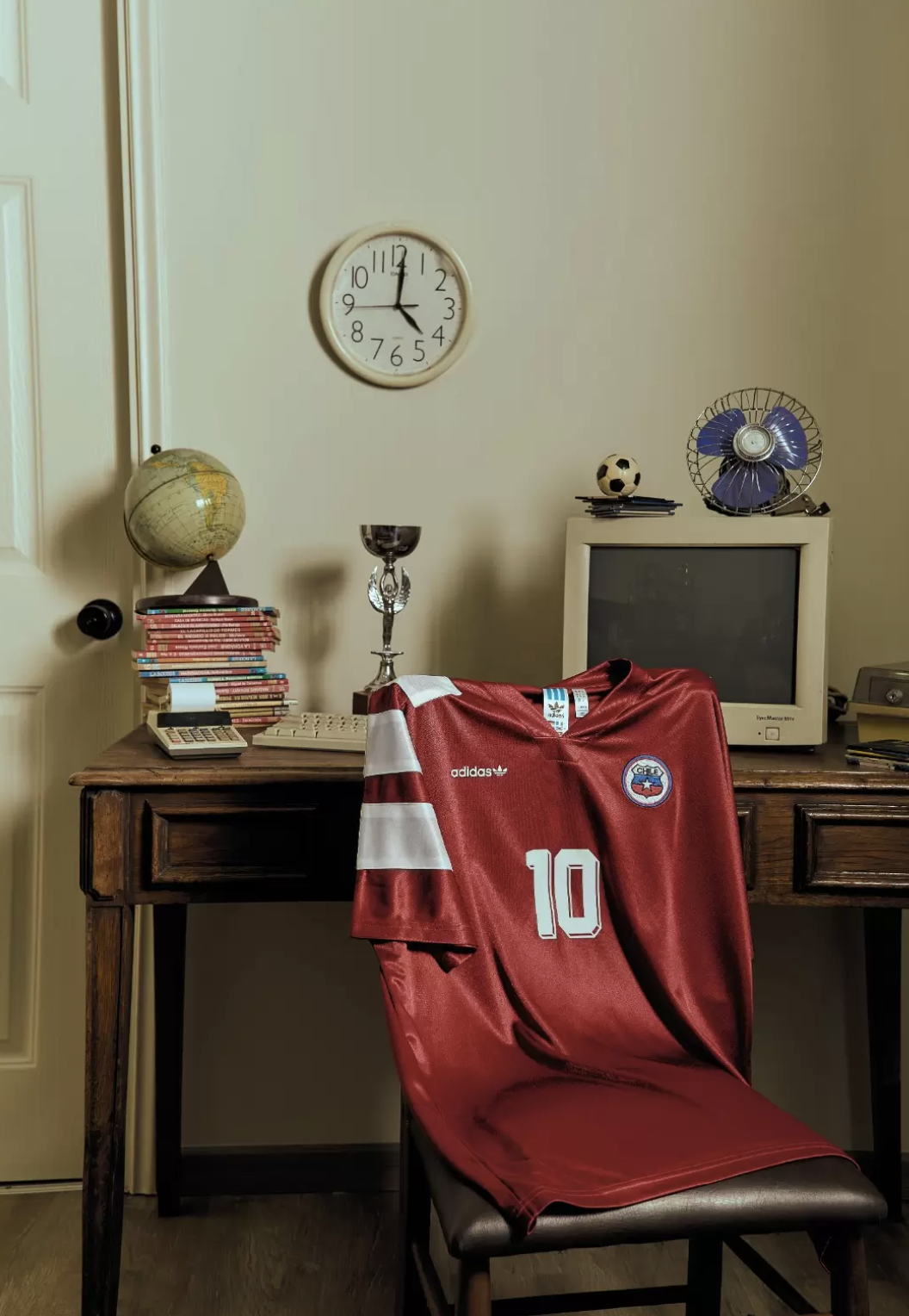 La prenda corresponde a una reedición de la camiseta utilizada por la selección nacional en el Mundial Sub 17 de Japón 1993, torneo en el que Chile obtuvo el tercer lugar, resultado que hasta hoy se mantiene como la mejor actuación del país en una cita planetaria de esta categoría.