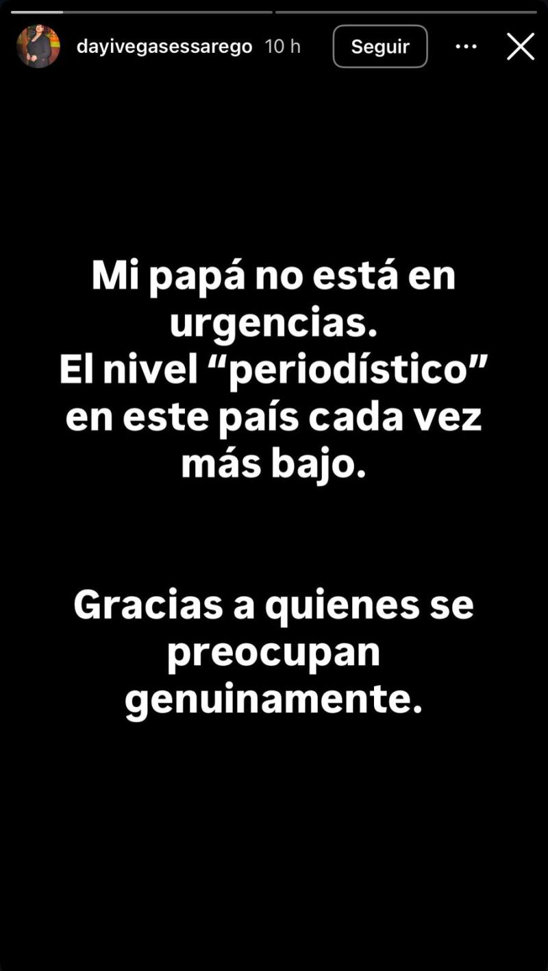 "Mi papá no está en urgencias. El nivel 'periodístico' en este país cada vez más bajo", disparó en sus stories, agradeciendo de paso a quienes se preocuparon de forma genuina.