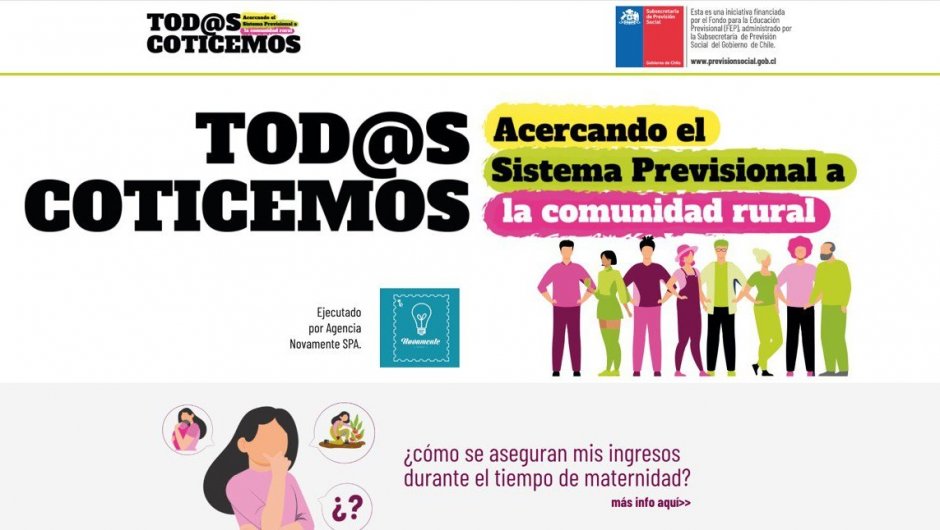 El proyecto financiado por el Fondo para la Educación Previsional (FEP) administrado por la Subsecretaría de Previsión Social y ejecutado por la Agencia Novamente SPA, tiene como objetivo difundir el Sistema de Pensiones y Seguridad Social entre habitantes de comunas alejadas de los centros urbanos y grupos transversales, en las regiones de Arica y Parinacota, Tarapacá, Atacama, Maule, Ñuble y Biobío.