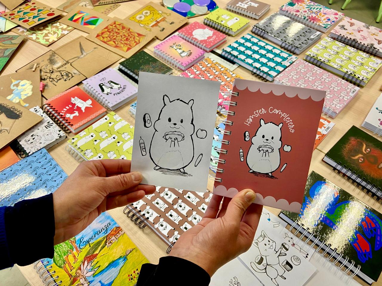 “Estamos muy contentas de que este proyecto se haya realizado para jóvenes, ya que la mayoría de los apoyos son para los más pequeños. Esto es muy bueno para que los jóvenes consigan un trabajo, acá se les está entregando un oficio y un reconocimiento porque acá muchos diseñan y necesitan darse a conocer, y los cuidadores también estamos apoyando con todo. Queremos llegar a ocupar un lugar importante en lo que sea publicidad, las agendas y todos estos productos que ellos hacen con diseños propios y exclusivos. Pronto tendremos poleras también, así es que estamos súper contentas porque todavía no hay techo”, indicó Rosa Ester Cancino, Presidenta del Grupo Cultural y Laboral, TEALLER.