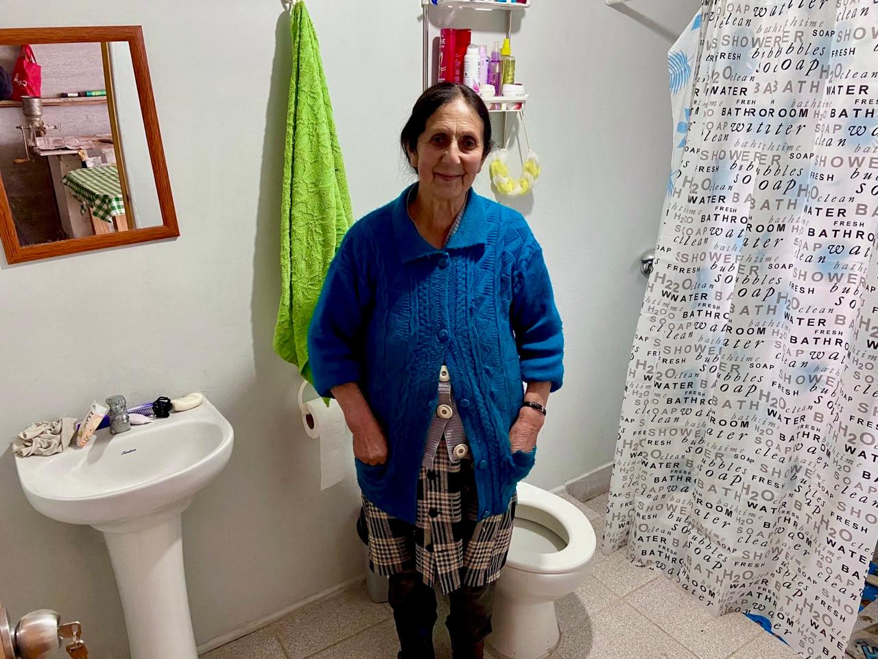 “Antes debíamos salir de la casa y caminar unos 50 metros para ir a un baño con letrina y un lavamanos al aire libre. Imagínese lo que era eso con este frío o la lluvia. Ahora en cambio tenemos el baño al lado de los dormitorios. Debíamos salir al patio no más, ponernos algo para cubrirnos y no mojarnos, ¿qué le íbamos a hacer? Con todo lo que gano no hubiese podido hacer esto. Son 200 lucas las que recibo y no tengo más porque debo costear el agua, la luz, el gas y las cosas para comer, pero afortunadamente nos llegó este regalito y nos cambió la vida, así que estamos muy felices”, indicó María Leontina.