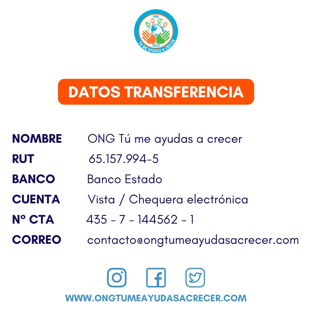 - Facebook: ONG Tú me ayudas a crecer Chile