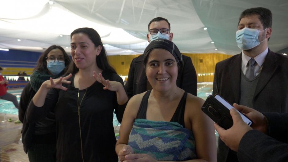 Miércoles 15 de junio de 2022.- El Seremi de Desarrollo Social y Familia, Manuel Yáñez Espinoza y la Directora Regional (S) del Servicio Nacional de la Discapacidad, SENADIS, Angela Gajardo Yáñez, realizaron una visita a Fernanda Cabello Bravo, persona con discapacidad visual beneficiada con un TVI individual, quien participa de los talleres paralímpicos de natación en la piscina temperada de la Universidad Católica del Maule.