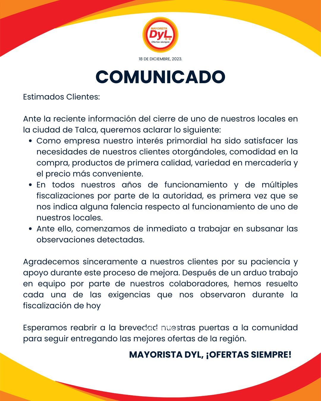 Seremi de Salud detalla "Prohibición de Funcionamiento" del Supermercado DyL en Talca