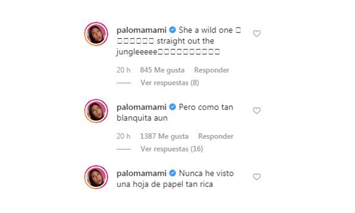 Sin embargo, en su última publicación llamó la atención uno de los comentarios, ya que Paloma le hizo una observación sobre su aspecto en bikini. La joven lucía una piel muy blanca, por lo que seguido de llamarle la atención, le hizo un cumplido que sacó varias risas. Revisa el momento a continuación:
